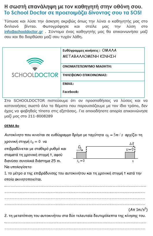 Κεφάλαιο 1.1 - Ευθύγραμμη κίνηση : Θέμα 8ο - Ευθύγραμμη ομαλώς επιβραδυνόμενη κίνηση